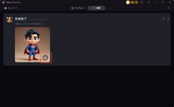 2. HitPaw FotorPeaは、AIで作成したコンテンツを履歴タブに保存します。
