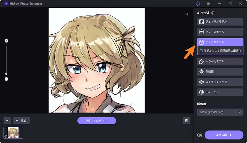 ④「HitPaw FotorPea」で写真の画質を高める手順