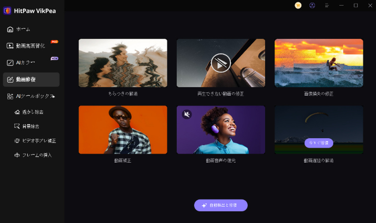- AIを使用した機能の向上 HitPawは、動画の修復に役立つ知的な人工知能と、最悪の状態でも、制作中の動画を回復できる処理の向上を取り入れました。