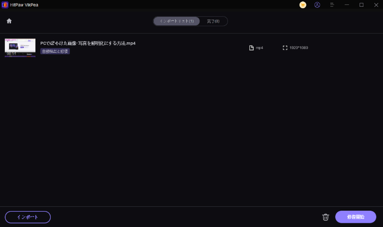 手順 3.破損した動画をインポートした後、回復処理を始めるため、「修復」ボタンをクリックします。HitPaw VikPeaは、動画ファイルの分析と修正をし、再生できる状態に回復させます。